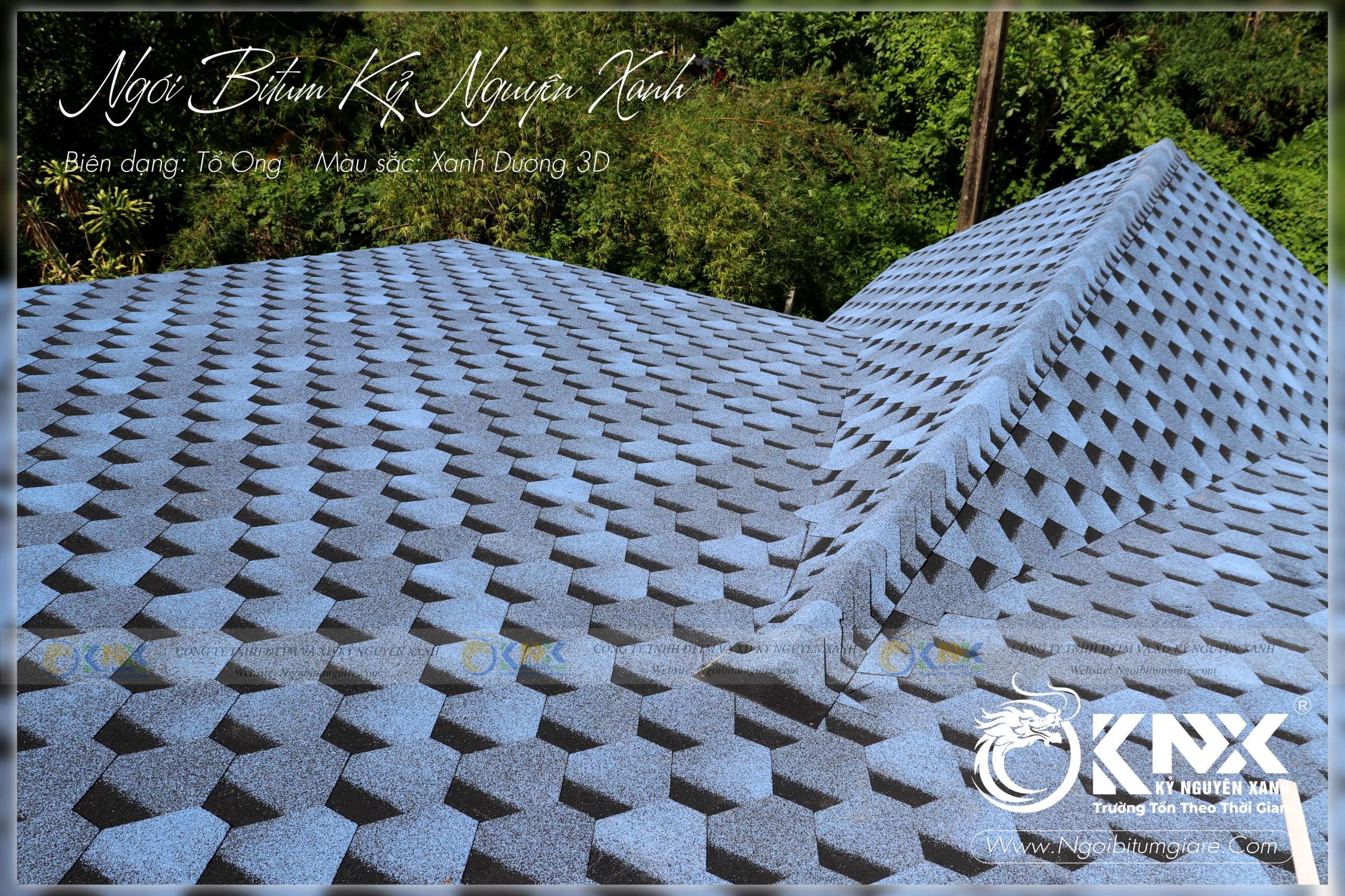NGÓI BITUM TỔ ONG MÀU XANH DƯƠNG CHUYỂN SẮC CHO BIỆT THỰ TẠI ĐÀ NẴNG